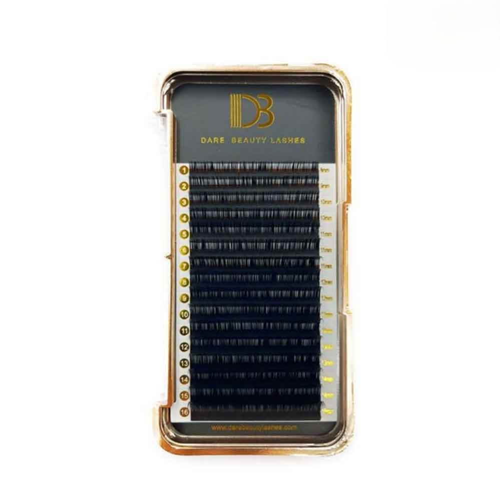 پالت مژه مشکی دی بی یکی از محبوبترین انواع پالت مژه و برندی با کیفیت و کاملا اقتصادی، مناسب مشتریانی که قیمت یکی از آیتم های اساسی در انتخاب شان می باشد. این مژه ها با تنوع بی شمار در فر، ضخامت و سایز مناسب انواع اکستنشن کلاسیک، والیوم، اسپایکی و … می باشند و با رنگ مشکی مات خیره کننده، جلوه ویژه ایی به چشم ها می بخشند.